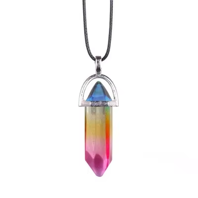 Natural Crystal Stone Crystal Bullet Hexagonal Pendulum Necklace