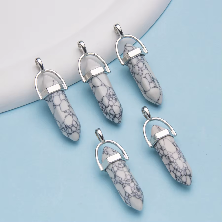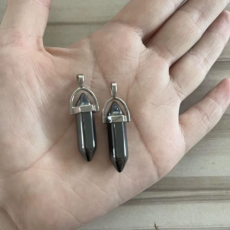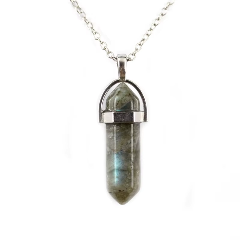 Natural Stone Crystal Bullet Hexagonal Pendulum Necklace